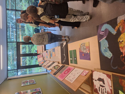 die Gäste mit Kuchen und Popcorn verpflegen und sich in der Kunstaustellung Schülerwerke ansehen. Nach den gemeinsam gesungenen Liedern am Ende waren sich alle einig, dass dies ein gelungener