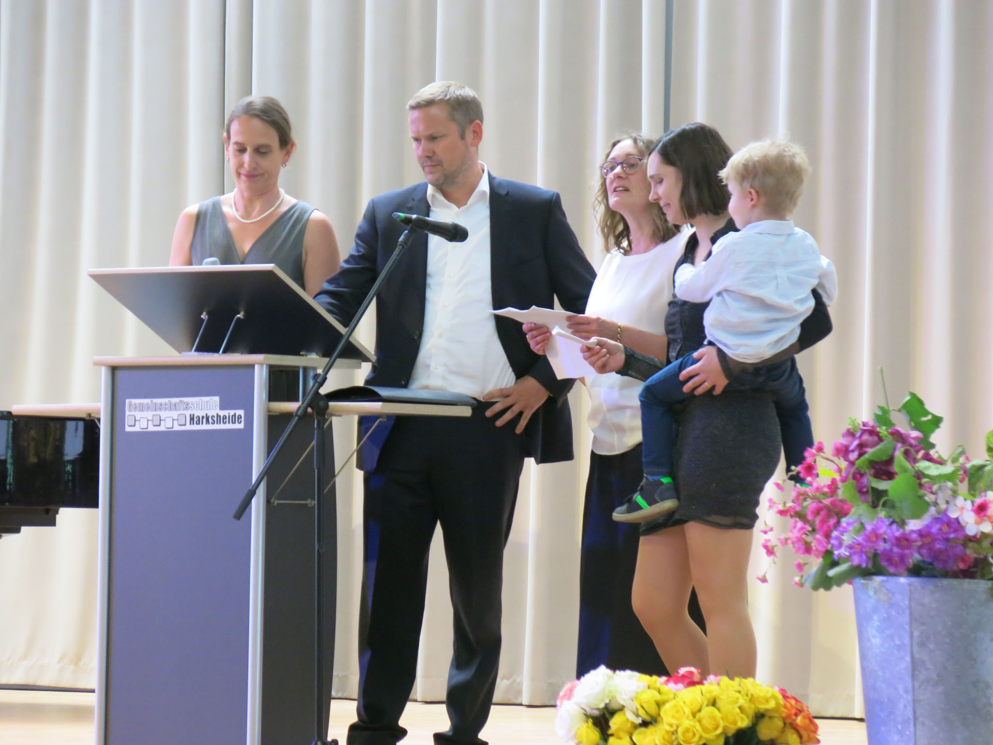 Schulleiters, der Elternvorsitzenden Frau Weidenhausen und ihrer Mitschüler und Mitschülerinnen, musikalischen Beiträgen und gemeinsamen Gesprächen bei Kaffee und Kuchen. Das obligatorische