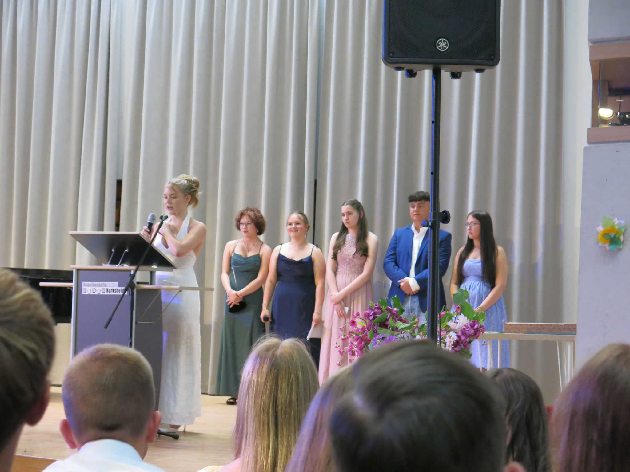 Mitschülerinnen und -schüler ihre Zeit an der Gems Harksheide Revue passieren. Es gab viele Worte des Lobes und einige gute Ratschläge für die neue Lebensphase. Die Jahrgangsbesten (von links