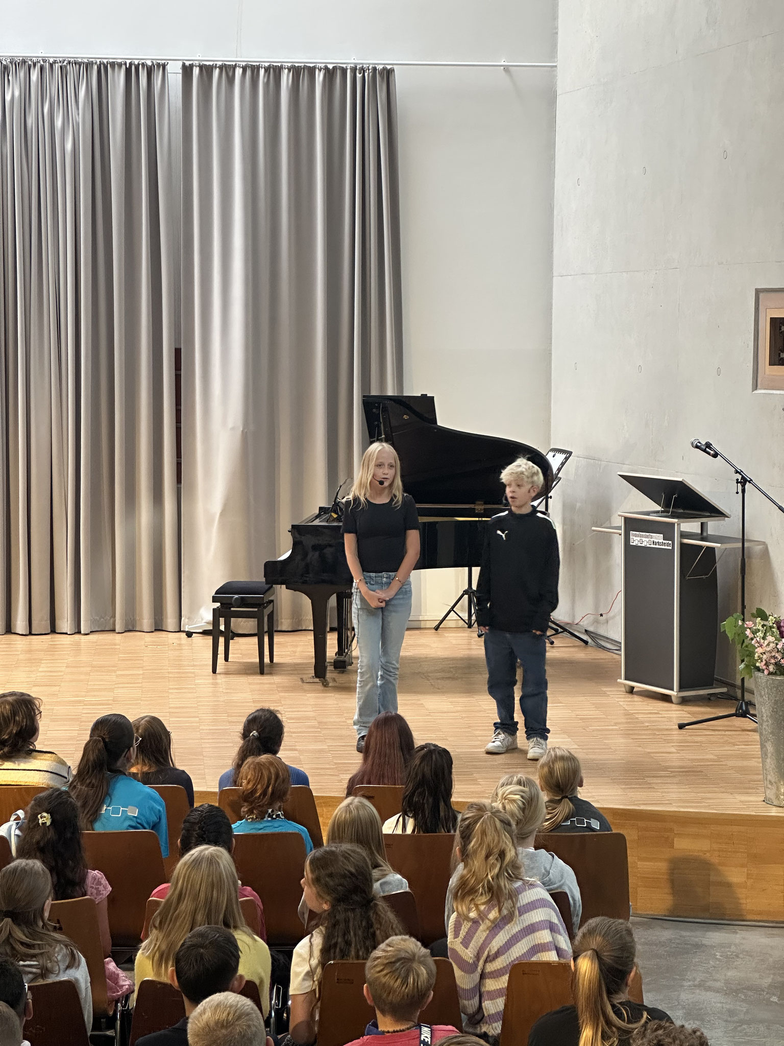 verschiedene Lieder, der Schülergruppen aus dem WPU I Theater präsentierten Sketche und Sammi aus der 7b spielte virtuos auf dem Klavier. Die 5. Klassen präsentierten ihre Beiträge für die