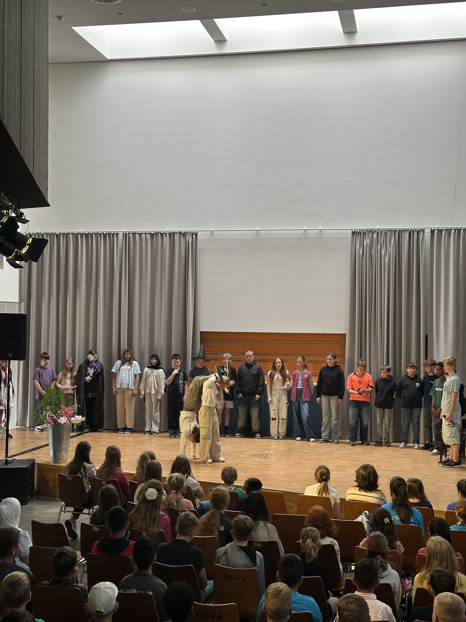 zukünftige Einschulungsfeier. Die 5a sang und musizierte ein Lied, die 5b begeisterte mit einer Zirkusshow und die 5c erzählte im Zeitraffer wie es in unserer Schule so zugeht. Zwischendurch