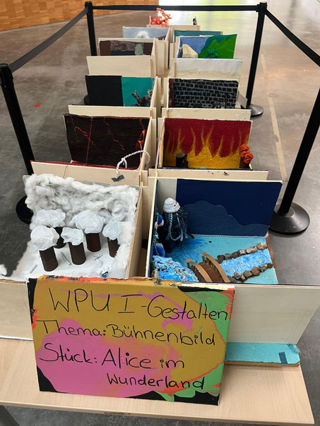 Schüler der 9. Klassen in den letzten sechs Wochen intensiv an eigenen Bühnenbild-Modellen gearbeitet. Ausgangspunkt war eine moderne Fassung von Alice im Wunderland. In Partnerarbeit wählten sie